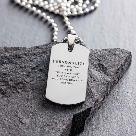 Nuestros collares dog tag personalizados con grabado son el accesorio perfecto para cualquier ocasión. Puedes personalizarlos con tu propio texto en ambos lados, y nosotros realizamos un grabado de alta calidad que refleje tu personalidad o un mensaje especial. Un regalo duradero y con estilo que será recordado por muchos años.