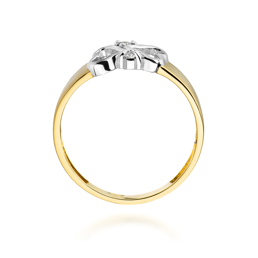 Dieser wunderschöne Verlobungsring aus Gold 585 ist mit atemberaubenden Diamanten im Gesamtgewicht von 0,04ct besetzt. Das elegante Design kombiniert die zeitlose Schönheit von Gold mit dem Funkeln von Diamanten und macht ihn zu einem perfekten Symbol für Liebe und Engagement. Der Ring zeigt eine zarte Schleife aus zwei herzförmigen Rahmen, die mit funkelnden Diamanten verziert sind und jedem Antrag einen Hauch von Raffinesse verleihen.